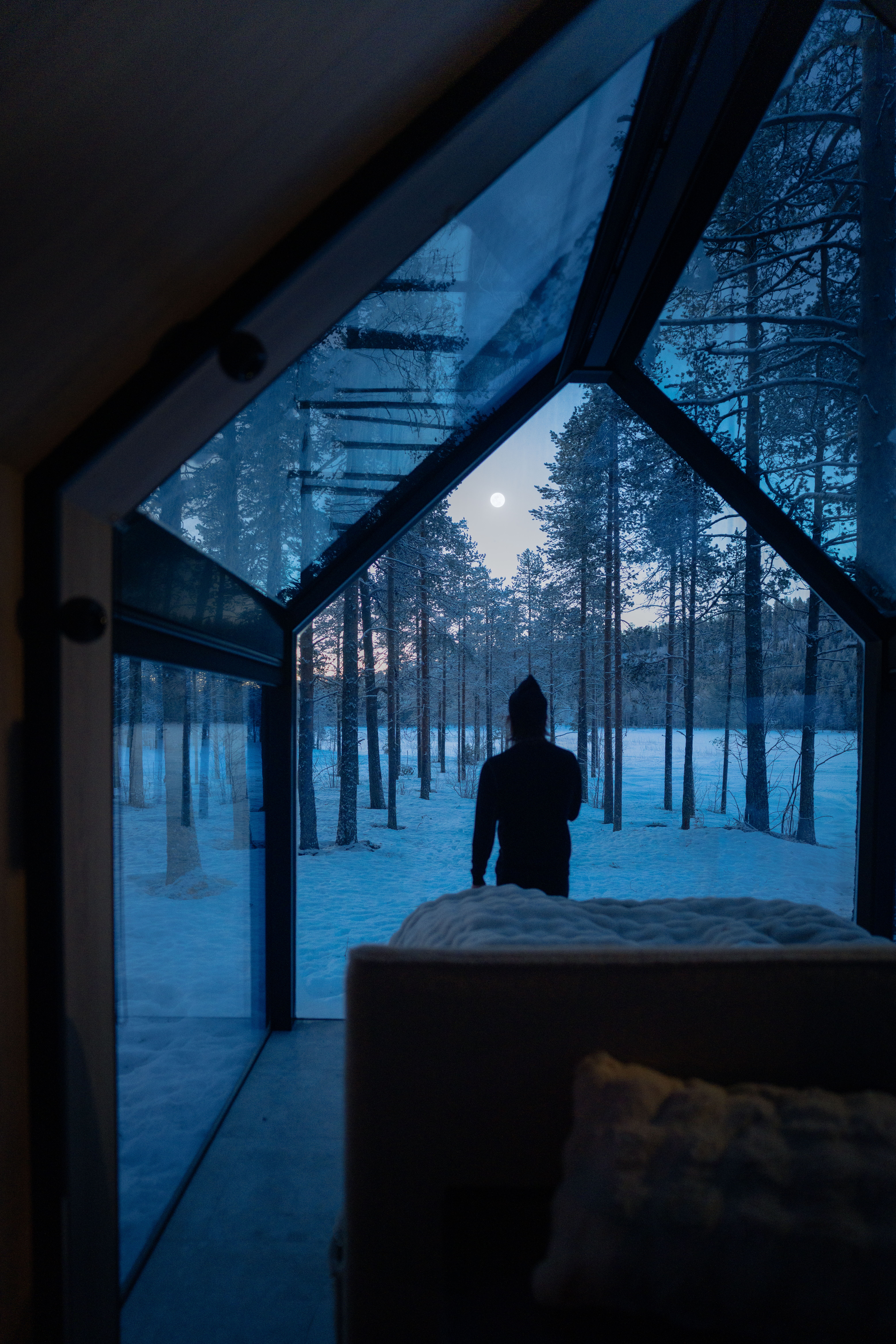 A private mirror cabin in Lapland. A structured nervous system protocol, tracked from arrival to departure. HRV biofeedback, passive sleep data every night, cold water, breathwork. Self-directed. Any dates.